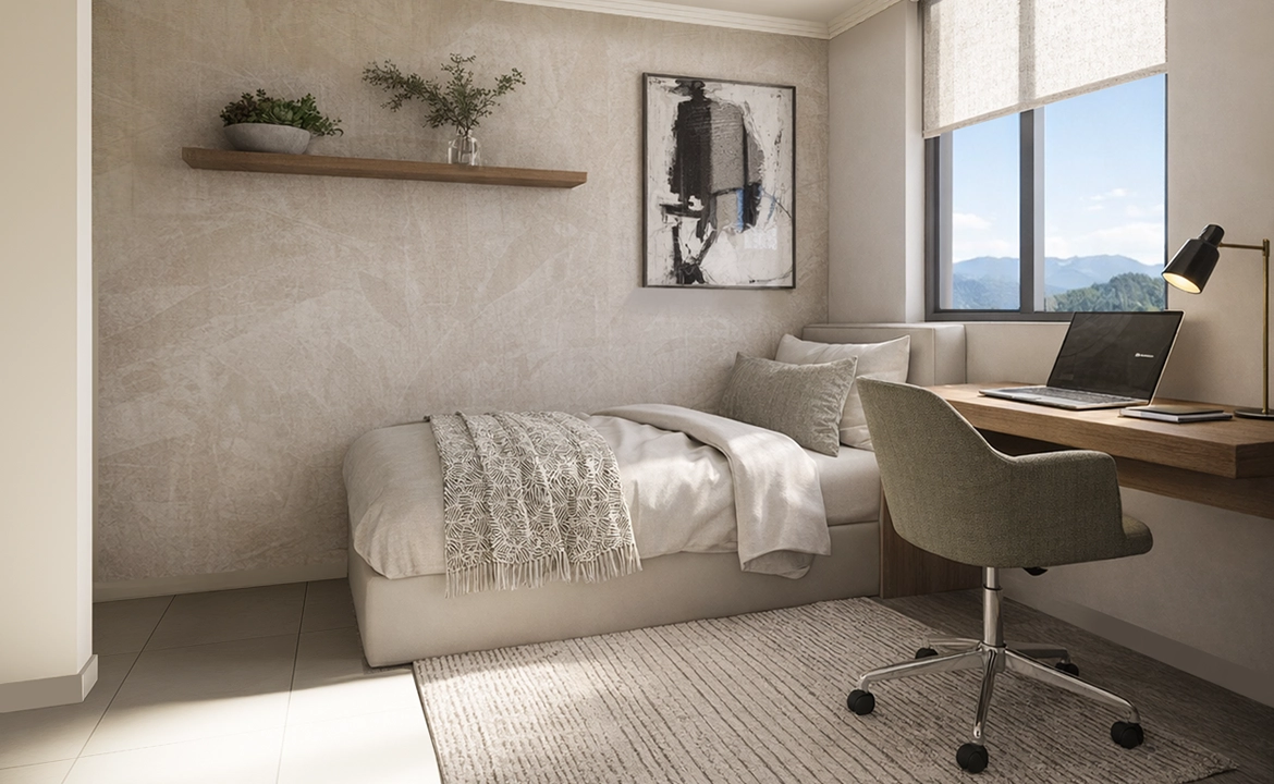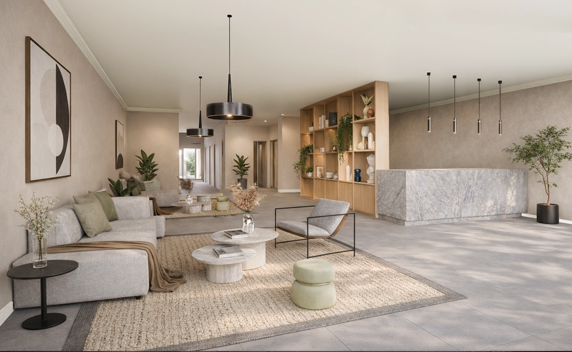 El edificio se distribuye en departamentos de 1 y 2 dormitorios e incorpora una serie de facilities como una sala de uso múltiple con quincho, espectaculares vistas a la Laguna, un gimnasio bien equipado y una zona de estudio y trabajo.